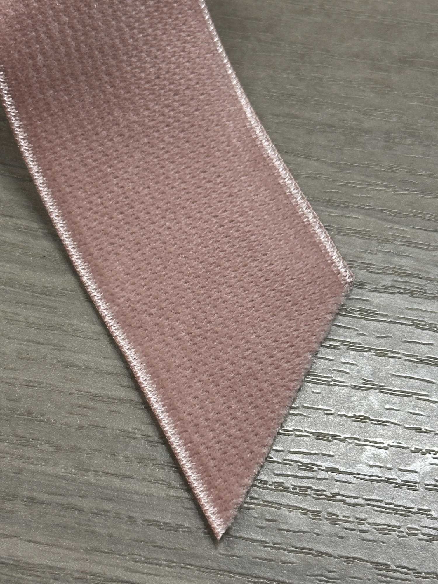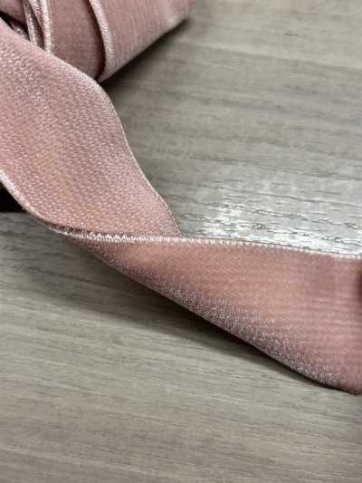 Ambos os lados são feitos de veludo, o que confere a esta fita a espessura ideal e uma presença marcante. Ficaria ótimo usado para marcar a cintura de um vestido, como alças de ombro ou como fitas decorativas, criando um visual clássico! Possui textura fosca, então você pode usá-lo também em ocasiões casuais. Sinto-me entusiasmada ao combinar a cor rosa da cor C/#20 com a textura deste veludo.