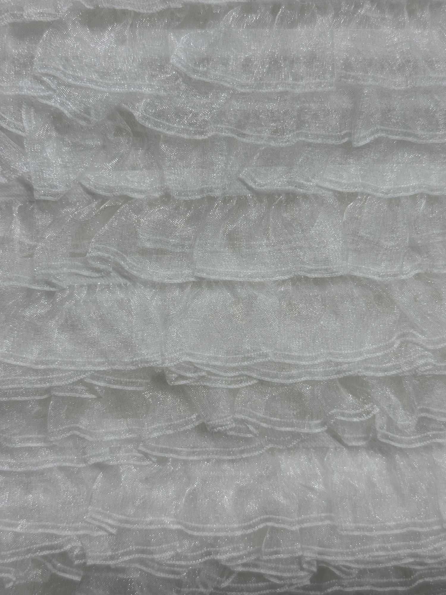 A costura ao longo da borda do babado realça as extremidades, conferindo-lhe uma presença mais marcante.